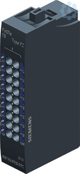 SIMATIC ET 200SP, Potenzialverteilermodul, PotDis-Terminalblock, PotDis-TB-P2-B, 18 x P2-Potenzial, Push-In-Klemmen Verpackungsmenge: 1 Stück, SIMATIC ET 200SP ist ein modular aufgebautes skalierbares und hochflexibles, dezentrales Peripheriesystem. Durch den kleinen Footprint ist es insbesondere für den Einbau in kleinen maschinennahen Schaltkästen konzipiert. Die Module können entweder direkt an eine ET 200SP CPU gesteckt oder via PROFINET oder PROFIBUS an eine Zentralsteuerung angeschlossen werden. SIMATIC ET 200SP kann mit bis zu 64 Peripheriemodulen ausgebaut werden, die in beliebiger Kombination gesteckt werden können. Das System bietet einsehr umfangreiches Spektrum an Baugruppen. Viele Module sind zudem in verschiedenen Ausprägungsstufen verfügbar, was die Skalierbarkeit bezüglich Funktionalität und Preis deutlich verbessert. So stehen neben Modulen mit Standardfunktionalität (ST) auch solche mit erweitertem Funktionsumfang und Diagnose (HF High Feature / HS High Speed) zur Verfügung. Für preissensitive Anwendungen stehen Module mit Basisfunktionalität (BA) bereit. Der Vorteil des ET 200SP Systems liegt in ihrer einfachen Anwendbarkeit, wie z. B. durch die freie Wahl der PROFINET-Anschlusstechnik über den Busadapter, die werkzeuglose Verdrahtung durch Push-In Technologie, eine verbesserte Zugänglichkeit der Verdrahtung durch neue Anordnung der Federöffner neben der zugehörigen Leiteröffnung und der kanalgenauen Diagnosefunktionen. Durch die Möglichkeit Modul- und Klemmenboxwechsel im laufenden Betrieb vorzunehmen, dem sog. Hot-Swapping, werden Verfügbarkeit und Produktivität der Maschine sichergestellt. Die skalierbare und kostenoptimierteKonfiguration einer ET 200SP - Station wird durch das umfassende Spektrum von Signalbaugruppen gewährleistet. Es stehen neben digitalen und analogen Ein- und Ausgabebaugruppen jeweils auch fehlersichere Varianten für Anwendungen bis SIL 3 / PLe zur Verfügung. Dies gilt ebenso für die integrierten Motorstarter, welche für Motoren bis 5,5 kW geeignet sind. Energy Meter zur Messung und Analyse des Energieverbrauchs, IO-Link Master (V1.1.) sowie viele weitere Kommunikations- und Technologiemodule ermöglichen es dem System sich an jede Automatisierungsaufgabe anzupassen. Mittels der Potentialverteilermodule, welche beliebig mit den enstprechend BaseUnits kombiniert werden können, kann durch den Wegfall von Reihenklemmen Platz im Schaltschrank eingespart und die Übersichtlichkeit zudem noch erhöht werden.