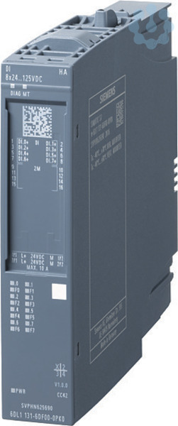 SIMATIC ET 200SP HA, digitales Eingangsmodul, DI 8X24 ... 125VDC HA passend für Terminal Block K0, Farbcode CC42, Kanaldiagnose Mit SIMATIC ET 200SP bietet Siemens Ihnen ein multifunktionales und dezentrales Peripheriesystem, das aufgrund seiner platzsparenden Bauweise ganz einfach in Betrieb genommen werden kann. Es ist für die Schutzart IP20 zugelassen und für den Einbau in einem kompakten Schaltkasten konzipiert. Das System gewährleistet Ihnen maximale Flexibilität, da Sie die Module aufgrund des Multi Hot Swapping jederzeit schnell und einfach tauschen können. Darüber hinaus bietet Ihnen das SIMATIC ET 200SP ein breites Spektrum an unterschiedlichen sowie schnellen Kommunikationswegen. Aufgrund der Integration des MultiFeldbus Interfacemoduls IM155-6MF sind Sie jederzeit flexibel und können das für Ihre Applikation optimale Protokoll verwenden, da durch diese Funktion mehrere Ethernet Protokolle unterstützt werden. Montage und Service werden durch ein einheitliches Kennzeichnungssystem, das auf Referenzkennzeichnungsschildern und Anschlussbelegungen mit Farbkodierung basiert, vereinfacht. Siemens garantiert Ihnen durch die Einbindung der innovativen und zugleich langlebigen Automatisierungsprodukte Zukunftssicherheit, denn als Branchenexperten setzen sie heute schon auf die Technologien von Morgen und definieren somit die Marktstandards neu. Durchgängige Datenverfügbarkeit, flexible Anwendungsfälle sowie vielseitige Integrationsmöglichkeiten sorgen für die optimale Performance der ET 200 Produkte.