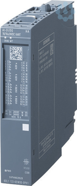 SIMATIC ET 200SP HA, konfigurierbares E/A-Modul, AI-DI16/DQ16X24VDC HART, passend für Terminal Block H1, M1, Farbcode CC00, Kanaldiagnose, 16bit, +/-0,1%, Mit SIMATIC ET 200SP bietet Siemens Ihnen ein multifunktionales und dezentrales Peripheriesystem, das aufgrund seiner platzsparenden Bauweise ganz einfach in Betrieb genommen werden kann. Es ist für die Schutzart IP20 zugelassen und für den Einbau in einem kompakten Schaltkasten konzipiert. Das System gewährleistet Ihnen maximale Flexibilität, da Sie die Module aufgrund des Multi Hot Swapping jederzeit schnell und einfach tauschen können. Darüber hinaus bietet Ihnen das SIMATIC ET 200SP ein breites Spektrum an unterschiedlichen sowie schnellen Kommunikationswegen. Aufgrund der Integration des MultiFeldbus Interfacemoduls IM155-6MF sind Sie jederzeit flexibel und können das für Ihre Applikation optimale Protokoll verwenden, da durch diese Funktion mehrere Ethernet Protokolle unterstützt werden. Montage und Service werden durch ein einheitliches Kennzeichnungssystem, das auf Referenzkennzeichnungsschildern und Anschlussbelegungen mit Farbkodierung basiert, vereinfacht. Siemens garantiert Ihnen durch die Einbindung der innovativen und zugleich langlebigen Automatisierungsprodukte Zukunftssicherheit, denn als Branchenexperten setzen sie heute schon auf die Technologien von Morgen und definieren somit die Marktstandards neu. Durchgängige Datenverfügbarkeit, flexible Anwendungsfälle sowie vielseitige Integrationsmöglichkeiten sorgen für die optimale Performance der ET 200 Produkte.