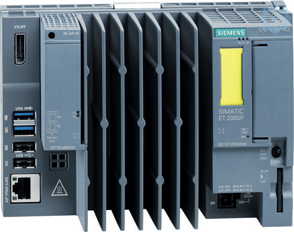 SIMATIC ET 200SP Open Controller, CPU 1515SP PC2 TF, 8 GB RAM (Grundgerät 6ES76772DB400AA0), 128 GB CFast mit Windows 10 IoT Enterprise 64bit und S7-1500 Failsafe Software Controller CPU 1505SP TF vorinstalliert, Schnittstellen: 1x Slot CFast, 1x Slot SD/MMC, 1x Anschluss für ET 200SP Bus- Adapter PROFINET, 1x 10/100/1000 MBit/s Ethernet, 2x USB 3.0, 2x USB 2.0, 1x DisplayPort, Dokumentation auf CFast, Restore-Image auf CFast Mit SIMATIC ET 200SP bietet Siemens Ihnen ein multifunktionales und dezentrales Peripheriesystem, das aufgrund seiner platzsparenden Bauweise ganz einfach in Betrieb genommen werden kann. Es ist für die Schutzart IP20 zugelassen und für den Einbau in einem kompakten Schaltkasten konzipiert. Das System gewährleistet Ihnen maximale Flexibilität, da Sie die Module aufgrund des Multi Hot Swapping jederzeit schnell und einfach tauschen können. Darüber hinaus bietet Ihnen das SIMATIC ET 200SP ein breites Spektrum an unterschiedlichen sowie schnellen Kommunikationswegen. Aufgrund der Integration des MultiFeldbus Interfacemoduls IM155-6MF sind Sie jederzeit flexibel und können das für Ihre Applikation optimale Protokoll verwenden, da durch diese Funktion mehrere Ethernet Protokolle unterstützt werden. Montage und Service werden durch ein einheitliches Kennzeichnungssystem, das auf Referenzkennzeichnungsschildern und Anschlussbelegungen mit Farbkodierung basiert, vereinfacht. Siemens garantiert Ihnen durch die Einbindung der innovativen und zugleich langlebigen Automatisierungsprodukte Zukunftssicherheit, denn als Branchenexperten setzen sie heute schon auf die Technologien von Morgen und definieren somit die Marktstandards neu. Durchgängige Datenverfügbarkeit, flexible Anwendungsfälle sowie vielseitige Integrationsmöglichkeiten sorgen für die optimale Performance der ET 200 Produkte. Der SIMATIC ET 200SP Open Controller verbindet als erster Controller dieses Typs die Funktionen eines PC-basierten Software Controllers mit Visualisierung, PC-Anwendungen und zentralen I/Os (Input/Output) in einem kompakten Gerät.