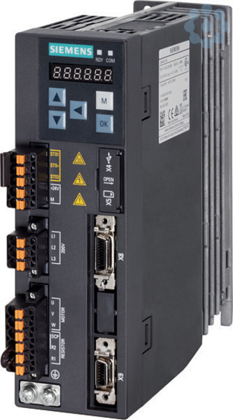 SINAMICS V90, mit PROFINET Eingangsspannung: 200-240 V 1/3-Phasen-AC - 15 %/+ 10 % 5,0 A/3,0 A 45-66 Ausgangsspannung: 0 - Eingangss 2,6 A 0-330 Hz Motor: 0,4 kW Schutzart: IP20 Baugröße B, 55x170x170 (BxHxT) Servoumrichter SINAMICS V90 das leistungsoptimierte und einfach zu bedienende Servoantriebssystem für vielfältige Motion-Control-Aufgaben mit Fokus auf dynamisches Bewegen und Verarbeiten. Der Servoumrichter SINAMICS V90 eignet sich zum Anschluss des Servomotors SIMOTICS S-1FL6, beide zusammen ergeben ein kostengünstiges Servoantriebssystem. Dieses zeichnet sich durch einen zuverlässigen Betrieb, eine optimierte Performance sowie eine einfache Handhabung aus. Mit dem SIMATIC Controller ergibt es ein starkes Team im TIA Portal. Je nach Ausführung kann für die schnelle und einfache Inbetriebnahme das kostenlose Inbetriebnahme-Tool SINAMICS V-ASSISTANT heruntergeladen werden. Der Servoumrichter SINAMICS V90 ist für den Betrieb an ein- und dreiphasigen Netzen geeignet und deckt mit vier Baugrößen einen Leistungsbereich von 0,1 kW bis 2,0 kW sowie einen Spannungsbereich von 200 V bis 240 V ab. Das System kann einfach über PTI, PROFINET, USS und Modbus RTU integriert werden. Der Servoumrichter SINAMICS V90 kann mittels verschiedener Optionen wie z.B. Anschlusskabel, Netzfilter, Steckverbindungen und weiterem Zubehör individuell den Anforderungen des Anwenders angepasst werden. SINAMICS - einfach mein Antrieb.