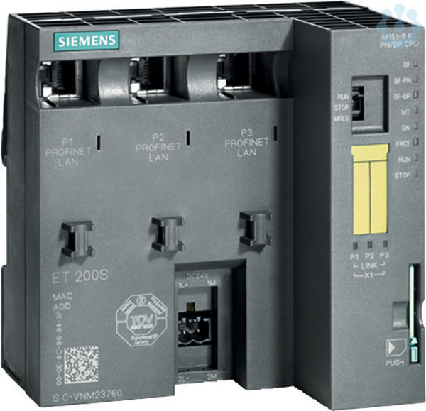 SIPLUS ET 200S IM 151-8F PN/DP based on 6ES7151-8FB01-0AB0 mit Conformal Coating, -25…+60°C, CPU für ET 200S, 256 KB Arbeitsspeicher, int. PROFINET-Schnittstelle (mit drei RJ45-Ports) als IO-Controller/I-Device ohne Batterie, MMC erforderlich SIMATIC ET 200S ist ein modular aufgebautes skalierbares, dezentrales Peripheriesystem, welches insbesondere für den Einbau in kleinen maschinennahen Schaltkästen konzipiert ist. Die Module können entweder direkt an eine ET 200S IM mit CPU Funktionalität gesteckt oder via PROFINET oder PROFIBUS an eine Zentralsteuerung angeschlossen werden. SIMATIC ET 200S kann mit bis zu 64 Peripheriemodulen ausgebaut werden, die in beliebiger Kombination gesteckt werden können. Das System bietet ein umfangreiches Spektrum an Baugruppen. Viele Module sind zudem in verschiedenen Ausprägungsstufen verfügbar, was die Skalierbarkeit bezüglich Funktionalität und Preis deutlich verbessert. So stehen neben Modulen mit Standardfunktionalität (ST) auch solche mit erweitertem Funktionsumfang und Diagnose (HF High Feature/ HS High Speed) zur Verfügung. Der Vorteil des ET 200S Systems liegt in der einfachen Anwendbarkeit, wie z. B. durch die Möglichkeit Modul- und Klemmenboxwechsel im laufenden Betrieb vorzunehmen. Durch das sog. Hot Swapping werden Verfügbarkeit und Produktivität der Maschine deutlich erhöht. Ist Ihre dezentrale Peripherie ungeschützt oder in kleinen Schaltkästen sichert SIPLUS extreme einen zuverlässigen Betrieb im Feld. Egal ob Temperaturerweiterung, Schutz vor Feuchtigkeit und Betauung oder mechanisch, biologisch und chemisch aktive Stoffe. Mit SIPLUS extreme sind sie auch bei rauen Umgebungsbedingungen auf der sicheren Seite.