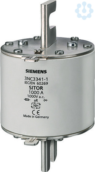 SITOR-Sicherungseinsatz, mit geschlitzten Messerkontakten, NH3, In: 1000 A, aR, Un AC: 1000 V, Un DC: 440 V, Stirnkennmelder Halbleiterschutzsicherungen SITOR 3NE, 3NC schützen Leistungshalbleiter vor den Auswirkungen eines Kurzschlusses. Das SITOR-Sicherungssystem von Siemens als wichtiger Bestandteil der SENTRON Schutzkomponenten für die Elektroinstallation bietet effektiven Personen-, Geräte- und Anlagenschutz durch sicheres Abschalten im Überlast- und Kurzschlussfall. Der Einsatzbereich umfasst zusätzlich Frequenzumrichter mit Sicherungen im Eingangs- und im DC-Zwischenkreis sowie auch USV-Anlagen und Sanftstarter für Motoren. Die Siemens SITOR-Sicherungen zeichnen sich vor allem aus durch: 1. Superflinke Abschaltcharakteristik im Vergleich zu herkömmlichen NH-Sicherungen. 2. Auch Leistungshalbleiter werden bei Kurzschluss sicher geschützt. 3. Der Siemens Qualitätsstandard sichert eine sehr gute Kennlinientreue. 4. SITOR-Zylindersicherungen sind nach IEC und UL und größtenteils auch CCC zugelassen und damit weltweit einsetzbar. 5. Teilweise geeignet für den Einbau in NH-Sicherungsunterteile, in NH-Sicherungslasttrennschalter und Lasttrennschalter mit Sicherungen.