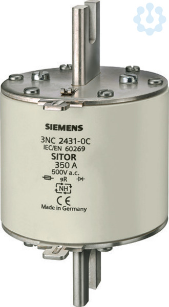 SITOR-Sicherungseinsatz, mit geschlitzten Messerkontakten, NH3, In: 350 A, gR, Un AC: 690 V, Un DC: 440 V, Stirnkennmelder Halbleiterschutzsicherungen SITOR 3NE, 3NC schützen Leistungshalbleiter vor den Auswirkungen eines Kurzschlusses. Das SITOR-Sicherungssystem von Siemens als wichtiger Bestandteil der SENTRON Schutzkomponenten für die Elektroinstallation bietet effektiven Personen-, Geräte- und Anlagenschutz durch sicheres Abschalten im Überlast- und Kurzschlussfall. Der Einsatzbereich umfasst zusätzlich Frequenzumrichter mit Sicherungen im Eingangs- und im DC-Zwischenkreis sowie auch USV-Anlagen und Sanftstarter für Motoren. Die Siemens SITOR-Sicherungen zeichnen sich vor allem aus durch: 1. Superflinke Abschaltcharakteristik im Vergleich zu herkömmlichen NH-Sicherungen. 2. Auch Leistungshalbleiter werden bei Kurzschluss sicher geschützt. 3. Der Siemens Qualitätsstandard sichert eine sehr gute Kennlinientreue. 4. SITOR-Zylindersicherungen sind nach IEC und UL und größtenteils auch CCC zugelassen und damit weltweit einsetzbar. 5. Teilweise geeignet für den Einbau in NH-Sicherungsunterteile, in NH-Sicherungslasttrennschalter und Lasttrennschalter mit Sicherungen.