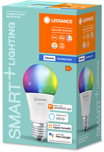 Klassische Kolbenform mit Bluetooth-Technologie. Produkteigenschaften: LED-Classic-A-Lampe mit intelligenter kabelloser Steuerungstechnik. Steuerbar über LEDVANCE SMART+ App (mit mindestens Android 6.0 oder iOS 11.0). Für vollen Funktionsumfang bei Steuerung über Apple Home App Verbindung mit Apple TV (ab tvOS 10) oder iPad (ab iOS 10) notwendig. RGB-Farbsteuerung, ca. 16 Mio. Farbmöglichkeiten einstellbar. Lichtfarbe über Tunable White einstellbar: Warmweiß bis Kaltweiß (2.700…6.500 K). Dimmbar. Netzwerkprotokoll: Bluetooth. Lebensdauer: bis zu 20.000 h. Produktvorteile: Einfache Installation und Nutzung. Bis zu 80 % weniger Energieverbrauch gegenüber Halogenlampen. Enthält kein Quecksilber. Anwendungsgebiete: Allgemeinbeleuchtung. Einsatz im Außenbereich nur in geeigneten Außenleuchten. Technische Ausstattung: Für Steuerung über LEDVANCE SMART + App Android-Smartphone (ab Android 6.0) erforderlich. Für Steuerung über Apple Home App iPhone (ab iOS 10), iPad (ab iOS 10), Apple TV (ab tvOS 10) oder Apple Watch (ab watchOS 2) erforderlich.