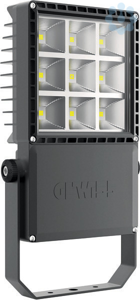 Planflaechenstrahler in flacher Ausfuehrung Serien mit 8 Optiksystemen: 2 x asymmetrisch, 2 x symmetrisch und 4 x rotationssymmetrisch Leuchtenkuehlkoerper aus kupferfreiem Aluminiumdruckguss dauerhaft groesstmoegliche Waermeableitung, Glasabdeckung mit Rahmen aus kupferfreiem Aluminiumdruckguss und Einscheibensicherheitsglas, ESG Transmissionsoptimiertes Weissglas, wechselbar in Silikondichtung eingebettet Steckverbindungssystem mit codiertem Stecker und Drehsicherung, Steckerbuchse anschlussfertig am Gehaeuse eingebaut Hoch effiziente High-Power-CSP-LEDs auf Aluminiumkernleiterplatte fuer eine hohe thermische Abfuhrleistung, Leuchtenkoerper mit segmentiver und integrativer Kuehlrippenkonfiguration fuer eine sofortige und beschleunigte Konduktion und lageunabhaengige Konvektion, Mit Montagebuegel, Stahl, galvanisch verzinkt und beschichtet Graphitgrau