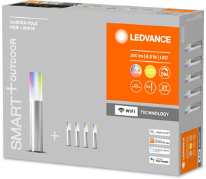Dekorative Poles für Außenanwendungen mit WiFi-Technologie. Produkteigenschaften: Steuerbar über LEDVANCE SMART+ WiFi App (mit mindestens Android™️ 4.4 oder iOS 10.0). Steuerung über Google Assistant oder Amazon Alexa möglich. RGB-Farbsteuerung, ca. 16 Mio. Farbmöglichkeiten einstellbar. Dimmbar. Farbtemperatur: 3.000 K (Warm White). Schutzart (Lichtpfahl): IP65. Schutzart (Netzteil): IP44. Erweiterung auf maximal 8 Poles. Produktvorteile: Einfache und schnelle Installation. Farbenreiche Gartenbeleuchtung mit smarten Steuerungsmöglichkeiten. Anwendungsgebiete: Gärten, Balkone und andere Außenbereiche. Technische Ausstattung: Netzteil nur im Basis-Set enthalten. Steuerung über App oder Sprachsteuerung erfordert kompatibles Smart-Home-System. Für die Steuerung über LEDVANCE SMART + WiFi App ist ein Smartphone oder Tablet erforderlich.