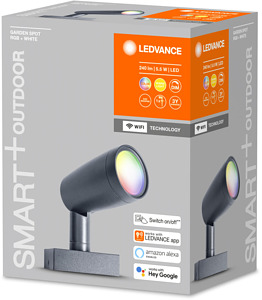 Dekorative Strahler für Außenanwendungen mit WiFi-Technologie. Produkteigenschaften: Steuerbar über LEDVANCE SMART+ WiFi App (mit mindestens Android™️ 4.4 oder iOS 10.0). Steuerung über Google Assistant oder Amazon Alexa möglich. RGB-Farbsteuerung, ca. 16 Mio. Farbmöglichkeiten einstellbar. Dimmbar. Farbtemperatur: 3.000 K (Warm White). Schutzklasse (Dots): IP65. Schutzart (Netzteil): IP44. Maximal 3 Spots in Verbindung mit einem Vorschaltgerät. Einfache Montage mittels Erdspieß oder Schrauben. Produktvorteile: Einfache und schnelle Installation. Anwendungsgebiete: Gärten, Balkone und andere Außenbereiche. Technische Ausstattung: Netzteil nur im Basis-Set enthalten. Steuerung über App oder Sprachsteuerung erfordert kompatibles Smart-Home-System. Für die Steuerung über LEDVANCE SMART + WiFi App ist ein Smartphone oder Tablet erforderlich.