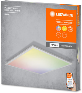 Panelleuchten mit mit WiFi-Technologie. Produkteigenschaften: Steuerbar über LEDVANCE SMART+ WiFi App (mit mindestens Android™️ 4.4 oder iOS 10.0). Steuerung über Google Assistant oder Amazon Alexa möglich. RGB-Farbsteuerung, ca. 16 Mio. Farbmöglichkeiten einstellbar. Dimmbar. Farbtemperatur: 3.000 K (Warm White). Netzwerkprotokoll: WiFi. Produktvorteile: Einfache und schnelle Installation. Anwendungsgebiete: Innenraumanwendungen. Küche, Wohn-, Kinder- oder Arbeitszimmer. Technische Ausstattung: Tragbügel enthalten. Inklusive Montageschrauben und Dübel. Steuerung über App oder Sprachsteuerung erfordert kompatibles Smart-Home-System. Für die Steuerung über LEDVANCE SMART + WiFi App ist ein Smartphone oder Tablet erforderlich.
