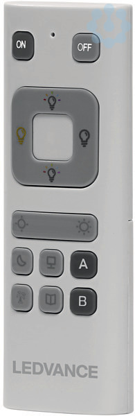 Fernbedienung mit WiFi Technologie zur Änderung der Farben. Produkteigenschaften: An-/Ausschalten und Dimmen. Lichtfarbe über Tunable White einstellbar: Warmweiß bis Kaltweiß. RGB-Farbsteuerung. Lichtszenen einstellbar. Batteriebetrieben (2x AAA Batterien). Steuerung von bis zu 15 SMART+ WiFi Produkten. Netzwerkprotokoll: WiFi. Produktvorteile: Kabellose Steuerung von kompatiblen SMART+ WiFi Produkten. Steuerung der SMART+ WiFi Produkte ohne Voice Control und APP. Auswahl voreingestellter Lichtszenen über Fernbedienung. Anwendungsgebiete: Smart Home im Innen- und Außenbereich. Steuerung von bis zu 15 kompatiblen SMART+ WiFi Produkten durch kontaktloses Verbinden. Technische Ausstattung: LEDVANCE SMART+ WiFi APP notwendig (nur für die Konfiguration von SMART+ WiFi products). Batterien sind nicht enthalten.