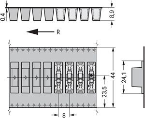 SMD-Through-Board-Leiterplattenklemme; 0,75 mm²; Rastermaß 6,5 mm; 1-polig; Push-in CAGE CLAMP®; im Gurt; 0,75 mm²; weiß