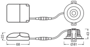 Einbaustrahler für Innenanwendung, einstellbar. Produkteigenschaften: Einstellbarer Schwenkwinkel: ±25°. Farbwiedergabeindex Ra: 90. Abstrahlwinkel: 36°. Gehäuse aus Aluminiumdruckguss. Federn mit weichem Silikonüberzug. Dimmbar (an vielen handelsüblichen Dimmern, siehe auch www.ledvance.de/dim). Durchverdrahtung möglich. Produktvorteile: Energieersparnis von bis zu 90 % verglichen mit Halogenlampen-Spotlights. Powerselect: Anpassung der Helligkeit über Dip-Schalter am Treiber. Einfacher Austausch des externen Treibers dank Stecker mit Bajonettverschluss. Einfache Installation und elektrischer Anschluss dank werkzeugfreier Anschlussklemmen. SCALE Design - tolles Erscheinungsbild, hochwertige Materialien und geringe Größe passen in jede Umgebung. 5 Jahre Garantie. Anwendungsgebiete: Direkter Ersatz für Einbaustrahler mit Halogenlampen. Allgemeinbeleuchtung. Hotelzimmer und Korridore. Bars, Restaurants. Akzentbeleuchtung. Galerien, Museen. Wohnräume. Technische Ausstattung: Externes Vorschaltgerät mit Dip-Schaltern zur Einstellung der Leistung während der Installation enthalten. Renovierungsringe sind als Zubehör erhältlich. Ausgewählter DALI 2.0 Treiber ist als Zubehör erhältlich.