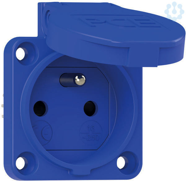Schutzkontakt-Anbausteckdose Serie S-NOVA; Gehäusematerial: PA6, Farbe: blau; Flanschabmessungen: 50x50 mm; Anschluss: Schraubklemme, seitlich; System: belg./franz. (Schutzkontaktstift) + Shutter; Kontakte: vernickelte Kontakte; 250V / 16A / 2P+E , Schutzart: IP54