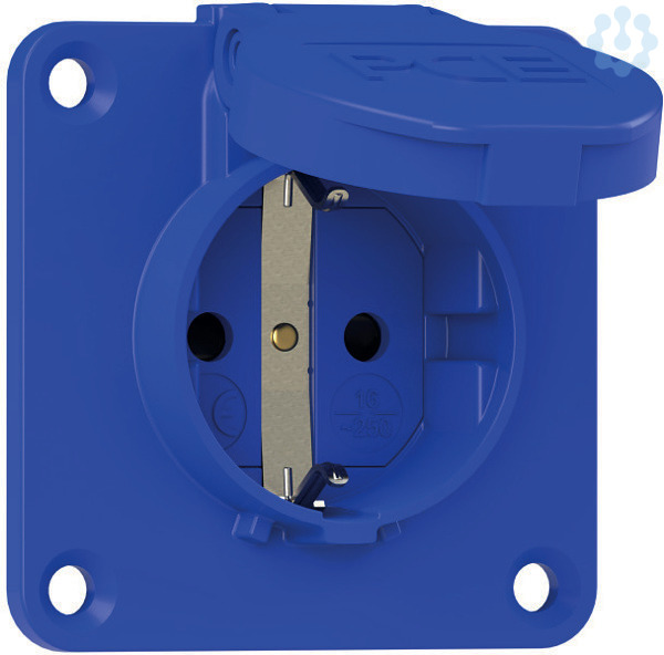 Schutzkontakt-Anbausteckdose Serie S-NOVA; Gehäusematerial: PA6, Farbe: blau; Flanschabmessungen: 70x70 mm; Anschluss: Schraubklemme, rückwärtig; System: österr./deutsch. Schutzkontaktsystem + Shutter; Kontakte: vernickelte Kontakte; 250V / 16A / 2P+E , Schutzart: IP54