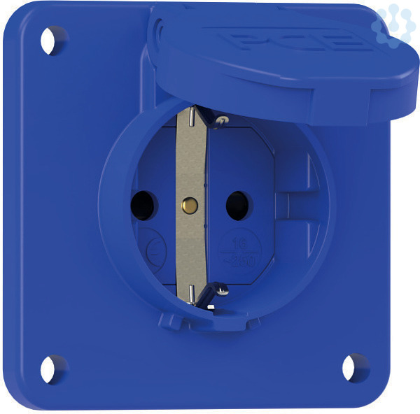 Schutzkontakt-Anbausteckdose Serie S-NOVA; Gehäusematerial: PA6, Farbe: blau; Flanschabmessungen: 75x75 mm; Anschluss: Schraubklemme, rückwärtig; System: österr./deutsch. Schutzkontaktsystem + Shutter; Kontakte: vernickelte Kontakte; 250V / 16A / 2P+E , Schutzart: IP54