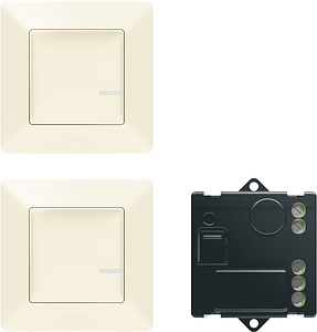 Vorkonfiguriertes Funk-Set für "Valena Life with Netatmo": Wechselschaltung mit Mikromodul - Vorkonfiguriertes Set zum Schalten von einem Lichtauslass mittels Mikromodul und Wandsendern bestehend aus:- 1x Funk-Mikromodul für Beleuchtung zur Installation direkt beim Lichtauslass. Anschluss mit Neutralleiter. Wird angesteuert durch einen oder mehrere drahtlose Funk-Wandsender und/oder herkömmliche Taster, wenn ein Fernschalter ersetzt wird. Zum Schalten von LED-, Halogen- und Kompakt-Leuchtstofflampen bis 300 W.- 2x Funk-Wandsender Licht zum Steuern von Funk-Steckdosen, Mikromodulen und/oder Funk-Lichtschaltern. LED-Anzeige für Batteriestatus. Ausgestattet mit einer 3 V-Batterie CR2032 (Standby-Lebensdauer: 8 Jahre) und 4wiederverwendbare Klebestreifen zur Befestigung des Wandsenders auf jeder Oberfläche. Dieser kann auch direkt an der Wand oder an eine Installationsdose geschraubt werden.Auslieferung komplett mit Wippe, Abdeckrahmen und Staubschutzabdeckung.Bemerkung: Bei Erweiterung der vorkonfigurierten Sets ist zu beachten, dass die Wandsender immer alle Schalter, Steckdosen und Mikromodule schalten.Ausführung: Valena Life in der Farbe Mandelweiss