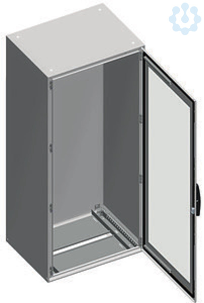 Spacial SM Monobloc kompakter Standschrank mit Sichttür an der Vorderseite. 1800 x 800 x 400 x 400 mm. Rückwand verschweißt, ohne Montageplatte. 4-Punkt-Türverriegelungssystem mit Griff DB 5mm. Stahlblech. Schutzart IP 55, IK08, Farbe RAL 7035. Inklusive 4 Halterungen für die Montageplatte.