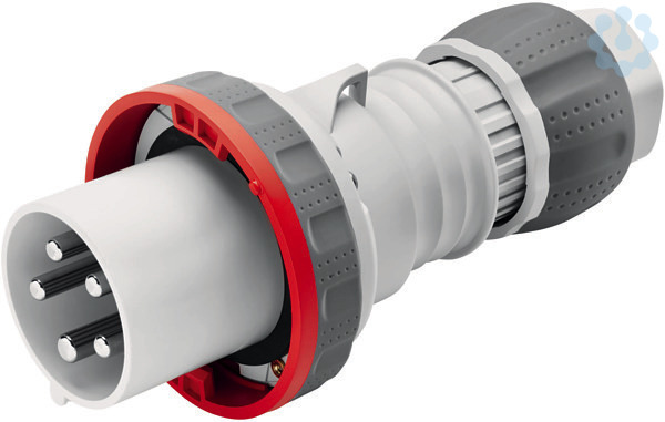Stecker fuer industrielle Anwendungen gemaess IEC 60 309 (EN 60 309) Baureihe IEC 309 HP mit Verschlussssystem aus Edelstahlschrauben und Gewindeeinsaetzen aus Messing, vernickelte Kontakte, Kunststoffteile halogenfrei gemaess EN 50 267-2-2 und gummierter Oberflaeche, Leitungseinfuehrung als Kabelverschraubung mit integrierter Zugentlastung, Anschlusstechnik: Schraubklemme, Anschlussquerschnitt 16 - 50 mm² feindraehtig / 25 - 70 mm² ein- oder mehrdraehtig, Temperaturbereich -25 - +40 °C, UV Bestaendig, Stossfestigkeit IK09