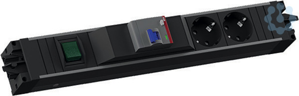 STEP ALU Steckdosenleiste 1x Wippschalter 2-pol. grün beleuchtet 2x Schutzkontaktsteckdosen schwarz 35° 1x FI Schutzschalter 25A, Ansprechstrom 30mA Beide Schalter schalten Stromein- und ausgang Stromeingang und -ausgang GST18 mit Bedruckung BACHMANN, verpackt im neutralen Karton