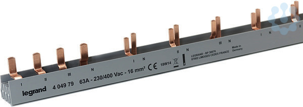 Legrand Stiftkammschienen - Kombination, 4-polig, 1 m, Querschnitt: 16 mm², 3-phasig+N, für 1 FI-Schutzschalter 4-polig und 25 Brandschutzschalter DX3 Stop Arc (AFDD mit LS-Schalter), Anzahl der angeschlossenen Geräte max.: 26
