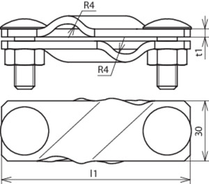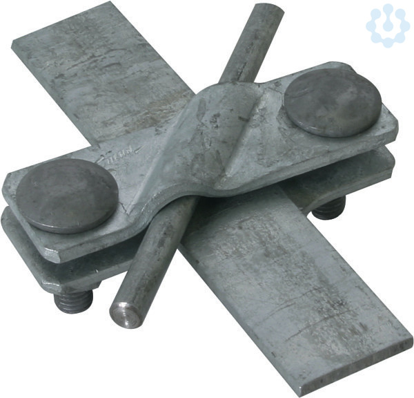 Schräg-Verbinder-Klemmen nach DIN EN 62561-1, für Kreuz- und T-Verbindungen von Rund- und Flachleitern. Ausführung mit Verdrehschutz der Schrauben M10.