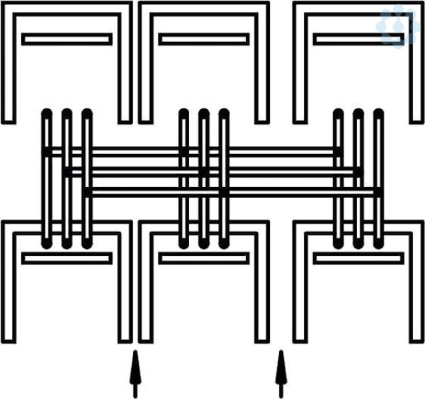 Sammelschienen als Sammelschienensystem, E-Cu nach DIN 43673-1, Abmessungen: 30 x 10 mm, mit einer Länge von 550 mm, Abmessungen: 30 x 10 mm, Schraubenanschluss M10, für einen Bemessungsstrom von 630 A, 3-polig, Verpackungseinheit 1 Stück