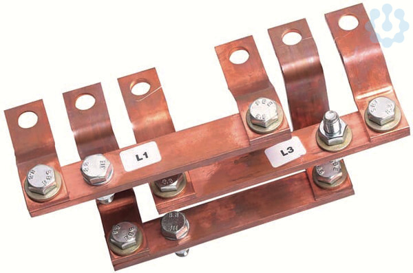 Sammelschienen als Sammelschienensystem, E-Cu nach DIN 43673-1, Abmessungen: 20 x 5 mm, mit einer Länge von 170 mm, Abmessungen: 20 x 5 mm, Schraubenanschluss M8, für einen Bemessungsstrom von 320 A, 3-polig, Verpackungseinheit 1 Stück