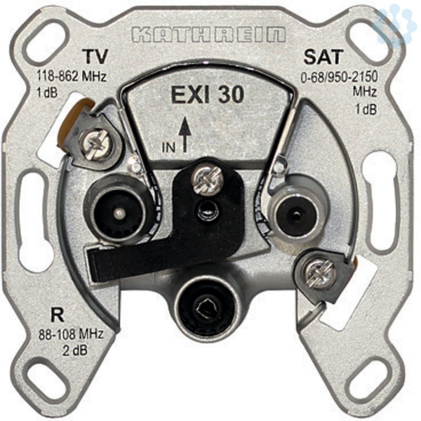 Sat-Einzelanschlussdose 3-fach, DC-Durchlass ueber SAT-Anschluss, Anschlussdaempfung typ. TV 1dB, FM 2dB, Sat Rueck. 1dB,