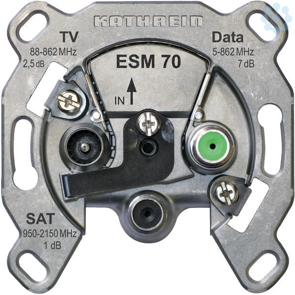 Sat-Modem-Einzelanschlussdose 3fach, TV FM typ.85-862 MHz, Mod. typ. 5-862 MHz, Sat 950-2150 MHz Anschlussdaempfung typ. 2,5-6,5-1,0 dB,