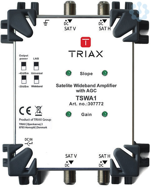 TSWA-1 - Widebeand Verstärker mit AGC Breitbandverstärker mit zwei Eingängen und automatischer Verstärkungsregelung. Der TSWA-1 ist für den Einsatz mit dem optischen Sender TSOT konzipiert und stellt 2 feste, geregelte Ausgangspegel zur Verfügung. Der Verstärker hat 2 Verstärker-Stufen, welche abhängig von der Größe der optischen Verteilung eingestellt wird.