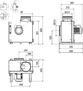 Schallgedämmte Abluftbox EKR 31-2 W echselstrom, neues Modell, DN315