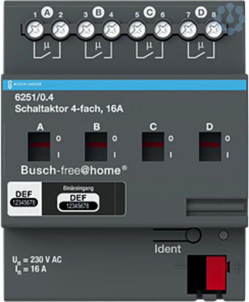 Zum Schalten von 4 unabhängigen 127 V~/230 V~ Verbrauchern.