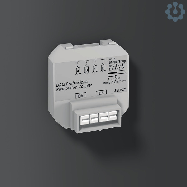 Gehäuse Kunststoff. Montage in Unterputzdose. Direktanschluss an DALI-Linie. Stromversorgung aus DALI-Linie (keine separate Spannungversorgung notwendig). 4 potentialfreie Eingänge. Handelsübliche Taster anschließbar.