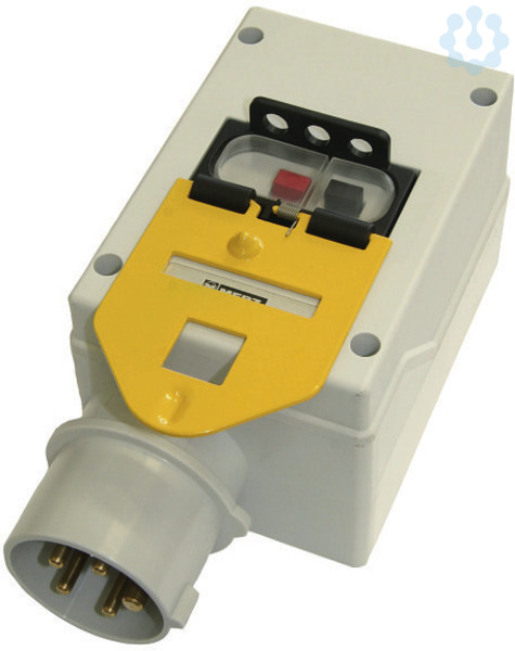 Aufbaugerätestecker mit Phasenwender CEE 16A 5p 400V mit Motorschutz; Gehäuse: ISO Gehäuse mit Vorprägung für Bohrungen 68x68 oder 80x80mm; 400V 50Hz, Unterpsannungsauslösung; mit Vorhängeschlosssperre; Einstellbereich: 10,0A - 16,0A; Schutzart: IP44; Besonders geeignet zum direkten Aufbau auf die Motorklemmfläche (ohne N-Klemme);