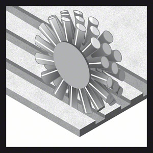 Die Scheibenbürste bietet ein gutes grobes Finish. Sie ist mit gezopftem Draht für schwere Reinigungsarbeiten an kleinen Flächen ausgestattet. Die Scheibenbürste ist für das Reinigen mit hoher Drehzahl von Stahl bestimmt und ist ideal für Schweißnähte, Oberflächen, Kanten und Fugen geeignet. Darüber hinaus ist sie ideal zum Entfernen von starkem Rostbesatz, Farbe, Schlacke, Graten und Zunder geeignet. Drahtbüsten werden in verschiedenen Stärken für verschiedene Schleifgrade angeboten. Stärkerer Draht arbeitet intensiver und schafft schnell Oberflächen, die allerdings grob sind. Dünnerer Draht sorgt für feinere und glattere Oberflächen.