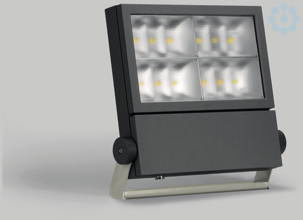 BEGA Leistungsscheinwerfer 84500K4. Breitstreuende Lichtstärkeverteilung. LED, 190 W Leuchten-Anschlussleistung, Leuchten-Lichtstrom 20949 lm, Halbstreuwinkel 70/62°, Farbtemperatur 4000 K. Farbwiedergabeindex (CRI) > 80. Mit austauschbarem BEGA LED-Modul mit Übertemperaturschutz und einer Lebenserwartung von mindestens 50.000 Betriebsstunden. 20-jährige Nachliefergarantie auf das LED-Modul und die Verschleißteile. Mit BEGA Ultimate Driver® LED-Netzteil, DALI-steuerbar? oder dimmbar 1-10 V, 220-240 V, 0/50-60 Hz. Integrierter Umschalter zur Begrenzung des Lichtstroms auf 70 % · 50 % · 30 %. Schutzart IP 67. Leuchte aus Aluminiumguss, Aluminium und Edelstahl Beschichtungstechnologie BEGA Unidure® , Farbe Grafit. Sicherheitsglas mit optischer Struktur. Reflektor aus eloxiertem Reinstaluminium. Schwenkbereich 180°. Eine Leitungsverschraubung für Netzanschlussleitung von ø 7,5 - 15 mm. Befestigungsbügel aus Edelstahl mit einer zentralen Bohrung Ø 22 mm und zwei Bohrungen Ø 9 mm, im Abstand von 80 mm und zwei Bohrungen Ø 11,5 mm, im Abstand von 200 mm. Abmessungen: 525 x 500 x 90 mm.