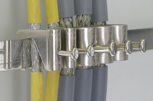 Schirmanschlussklemmen zur Erdung von Kabelschirmen auf Sammelschiene (18x3). Geeignet zum Blitzschutz-Potentialausgleich. Der nachträgliche Einsatz ohne Unterbrechen des Leiterschirmes ist möglich – werkzeuglose Montage.