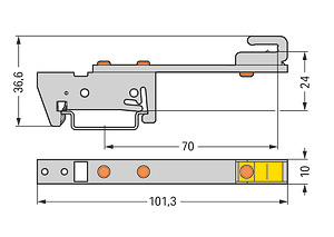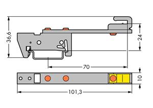 Sammelschienenhalter; für Sammelschienen Cu 10 mm x 3 mm; einseitig, gerade; auf TS 35 aufrastbar; silberfarben
