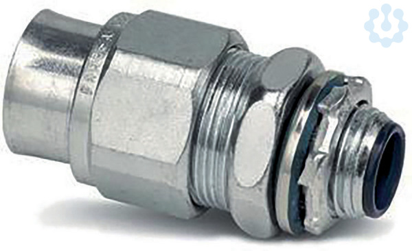 Gerade Metall-Verschraubung fuer TYPEA - Kunststoff-Schlauch mit glatter Innen- und Außenoberflaeche, aus galvanisiertem Stahlguss mit verchromter Oberflaeche, Nenngroeße 1/2 Zoll bzw 20 mm, Gewindanschluss NPT 1/2 Zoll, Schutzklasse IP66
