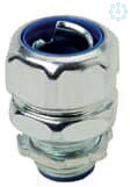 Gerade Metall-Verschraubung, fuer fluessigkeitsdichte Metall-Schutzschlaeuche, aus galvanisiertem Stahlguss mit verchromter Oberflaeche, Innenhuelse aus Polyamid, Nenngroeße 3/8 Zoll bzw 16 mm, Gewindeanschluss NPT 1/2 Zoll, Schutzklasse IP67