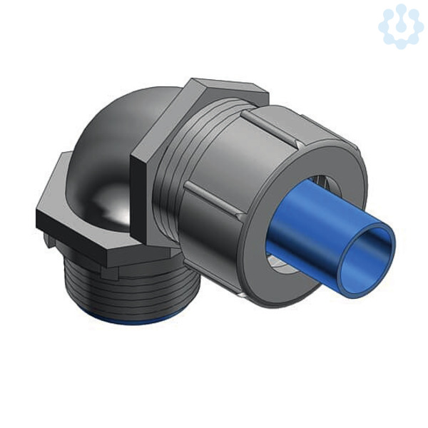90° abgewinkelte Metall-Verschraubung fuer EFC/LTC/LTC-GY - Kunststoff-Schlaeuche mit verstaerktem Innenwendel, Nenngroeße 32 mm, Gewindeanschluss NPT 1 Zoll, aus verzinktem Stahlguss, Schutzklasse IP 65