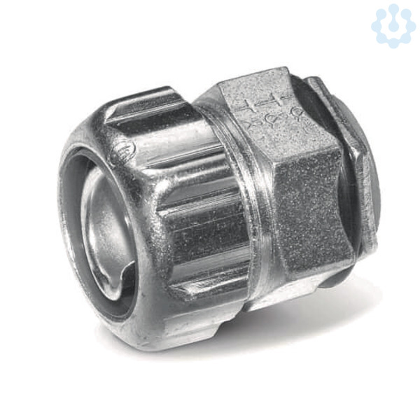Gerade Metall-Verschraubung fuer fluessigkeitsdichte Metall-Schutzschlaeuche, Kompakte Chase-Version fuer platzsparende Montage durch Innenmutter, Nenngroeße und Schlauchanschluss 1 Zoll bzw 32 mm, aus verzinktem Stahlguss, Schutzklasse IP 67