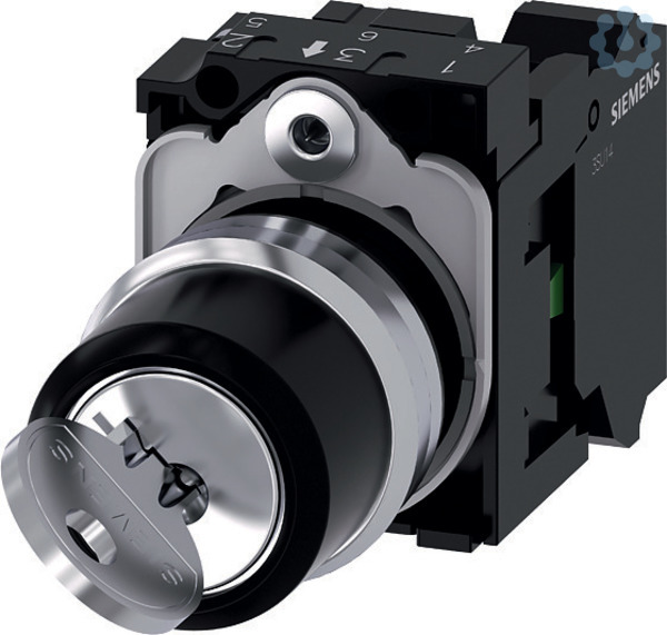 Schlüsselschalter RONIS, 22 mm, rund, Metall, hochglanz, Schließ-Nr. SB30, mit 2 Schlüsseln, 2 Schaltstellungen O-I, verrastend, Schaltwinkel 90°, 10:30h/13:30h, Schlüsselabzug O+I, mit Halter, 1S, Federzuganschluss, mögliche Sonderschließungen: SB31, 421, 455 Schlüsselschalter SIRIUS ACT für einen höheren Anspruch an Zugangssicherheit.Unter dem Markennamen SIRIUS ACT bietet Siemens ein einzigartiges Portfolio an Befehls- und Meldegeräten mit weltweiten Produkt-Zulassungen in drei modernen Designreihen aus robustem Echtmetall und hochwertigem Kunststoff.Das innovative Aufschnappkonzept vereinfacht die Montage so weit, dass dafür nur eine Hand und kein Spezialwerkzeug erforderlich ist. Als Montagebohrungen genügen nutfreie Löcher, da bereits ein 100%iger Verdrehschutz integriert ist.Dank der durchgängig hohen Schutzart sind die robusten Geräte industrietauglich und für den Außeneinsatz geeignet. Sogar die Reinigung mit Hochdruckstrahl ist möglich. Weder Staub, Öle noch aggressive Laugen können den zuverlässigen Betrieb stören.Neben der Standardverdrahtung können die meisten Geräte auch über PROFINET, AS-Interface oder IO-Link an die Steuerung angebunden werden. Damit reduzieren Sie Ihren Verdrahtungsaufwand, minimieren Fehlerquellen und gewinnen mehr Flexibilität.Komfortabel unterstützt der grafische Online-Konfigurator bei Auswahl und Bestellung von Einzelgeräten, Gehäusen und Beschriftungen. Umfangreiche Dokumentation (z.B. Handbuch, 3D-Daten, Anschlussdiagramm) ist verfügbar.Lieferbare Ausführungen: verschiedene Schließsysteme (Siemens, BKS, RONIS, OMR, IKON), 2/3 Schaltstellungen, verrastende/tastende Betätigung, verschiedene Schlüsselabzugstellungen.Hinweis: Komplettgerät, Lieferung inklusive Halter und Module.SIRIUS ACT - Performance in Action beim Befehlen und Melden. Einfach montiert, einfach stark, einfach perfekt.