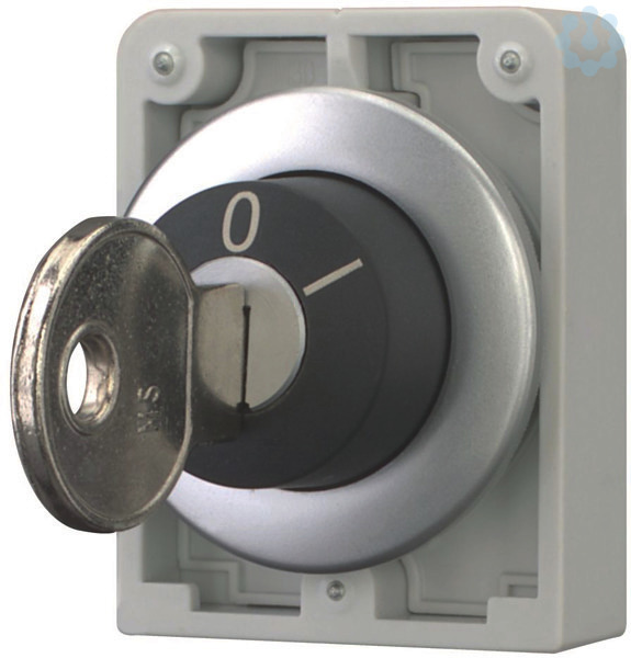 Schlüsseltaste, Sortiment: RMQ-Titan, Einzelgerät, Bauform: Schlüsselbetätigung, rastend, nicht schließanlagenfähig, 2 Stellungen, Schließung: MS8, I, Schutzart: IP64, Frontring Metall, Anbindung an SmartWire-DT: ja, mit RMQ-SWD-Anschaltungen, Frontabmessung: Ø 36 mm, Hinweise: Rast-/Tastfunktion mit Codierteilen M22-XC-Y veränderbar, Schlüsselabziehbarkeit mit Codierteilen M22-XC-… veränderbar, mit 1 Schlüssel, Normen und Bestimmungen: IEC/EN 60947, VDE 0660, Schutzart: IP64