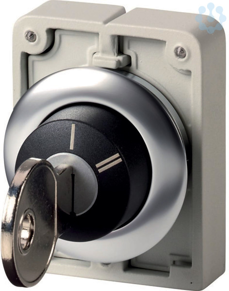 Schlüsseltaste, Sortiment: RMQ-Titan, Einzelgerät, Bauform: Schlüsselbetätigung, rastend, nicht schließanlagenfähig, 2 Stellungen, II, Tastenplatte Tastenplatte: schwarz, beschriftet, Schutzart: IP64, Frontring Edelstahl, Anbindung an SmartWire-DT: ja, mit RMQ-SWD-Anschaltungen, Frontabmessung: Ø 36 mm, Hinweise: Rast-/Tastfunktion mit Codierteilen M22-XC-Y veränderbar, Schlüsselabziehbarkeit mit Codierteilen M22-XC-… veränderbar, mit 1 Schlüssel, Normen und Bestimmungen: IEC/EN 60947, VDE 0660, Schutzart: IP64