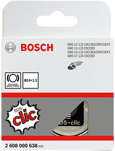 Die SDS clic M14 ist eine schnellsichernde Spannmutter zum schnellen und einfachen Spannen und Lösen von Winkelschleiferzubehör wie Schleiftöpfen, Diamanttrennscheiben und Schruppscheiben. Sie ist geeignet für alle Winkelschleifer mit Gewinde M14 und einem Produktionsdatum ab 08/90. Die Scheibe muss beim Zentrieren am Stützflansch ausgerichtet werden und nicht an der Mutter. Passend zu: GWS 12-125 CIEPX. GWS 12-125 CIEX. GWS 12-125 CIPX. GWS 12-125 CIX. GWS 15-125 CIEPX. GWS 15-125 CIEX. GWS 15-125 CIPX. GWS 15-125 CIX Professional.