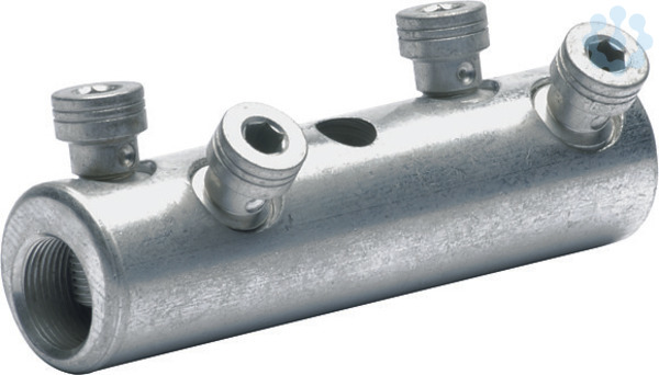 Ideal zum Verbinden gleicher und ungleicher Leiterquerschnitte. Zum Verbinden unterschiedlicher Leitertypen und Materialien nach VDE 0295 Klasse 1 und 2 und Al-Leiter nach DIN 48201 Teil 5. Mit Sichtloch zur Kabeleinschubkontrolle (Unterschiedliche Materialien dürfen sich nicht berühren). Spezielles Rillenprofil im Innern zur Zerstörung der Oxidationsschicht beim Verschrauben. Ausführung mit 4 Schrauben. Klemmkörper: hochfeste Aluminiumlegierung.