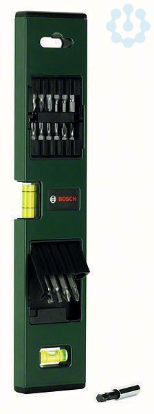 Schrauberbit-Set mit Wasserwaage. 17-teilig. Damit nichts schief hängt! 16 hochwertige Schrauberbits, praktisch in der Wasserwaage integriert. Robust, kompakt und einfach zu handhaben: Mit dem Bosch-Zubehör-Set im praktischen Tragekoffer haben Sie alles im Griff. Die X-Line-Serie von Bosch bietet Ihnen eine erstklassige Basisaustattung an Zubehör in Top-Qualität: Übersichtlich angeordnet und immer griffbereit. Sortierbox mit praktischer Wasserwaagen-Funktion zum sofortigen Einsatz während des Schraubens. Guter Halt der Schraube im Bit durch Magnethalter. Inklusive magnetischem Universalhalter für schnellen Bitwechsel und guten Halt der Schraube im Bit. Für alle Elektrowerkzeugmarken geeignet. Inhalt des Sets: 12 Schrauberbits, Länge: 25 mm. PH 1, PH 2, PZ 1, PZ 2, PZ 3, HEX 3, HEX 4, HEX 5, T 15, T 20, T 25, T 30. 4 Schrauberbits Länge: 50 mm, PH 2, PZ 2, T 20, T 25. Mit integrierter Wasserwaage, 1 Universalhalter, magnetisch.