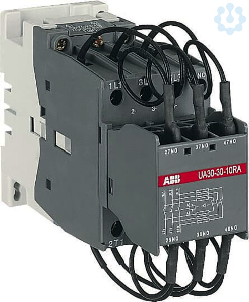 Die 3-polige Schütze UA30-30-10RA zur Kondensatorschaltung können in Anlagen eingesetzt werden, bei denen der Spitzenstrom weit über dem 100-fachen Nenn-Effektivstrom liegt. Die Schütze werden komplett mit ihren Dämpfungswiderständen geliefert und müssen ohne zusätzliche Induktivitäten eingesetzt werden. Ihre elektrische Lebensdauer beträgt 250 000 Schaltspiele bei Ue < 500 V und 100 000 Schaltspiele bei 500 V ≤ Ue ≤ 690 V. Die Schütze UA..RA sind mit einem speziellen Frontblock ausgestattet, der die serielle Einfügung von drei Dämpfungswiderständen in den Stromkreis gewährleistet, um die Stromspitze bei der Erregung der Kondensatorbank zu begrenzen. Ihr Anschluss gewährleistet auch die Vorladung der Kondensatoren, um die zweite Stromspitze beim Einschalten der Hauptpole zu begrenzen. Durch den Einsatz von Widerständen kann die höchste Stromspitze des Kondensators beim Einschalten unabhängig von ihrer Höhe gedämpft werden. Die 3-poligen Schütze der Baureihe UA...RA sind in Blockbauweise ausgeführt.