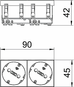 Modul 45 Steckdose 2fach mit 33° Steckrichtung, mit Verbindungsklemmen nach IEC 60884-1.